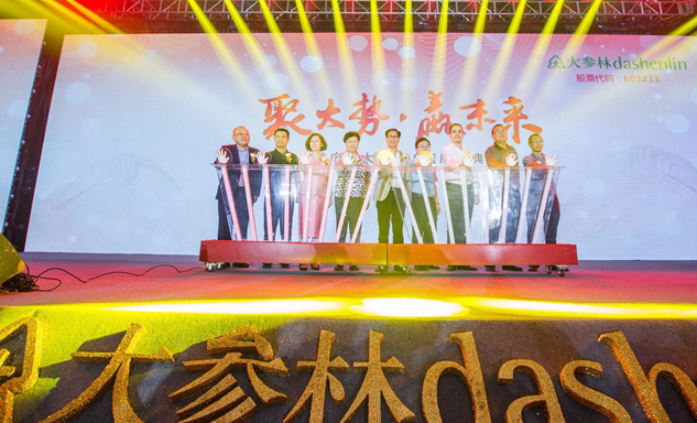 w66旗舰厅药业集团董事长刘景萍女士与大参林医药集团董事长柯云峰先生、中国医药商业协会执行会长付明仲女士等嘉宾共同开启了“聚大势•赢未来"大参林工商合作峰会的大幕。
